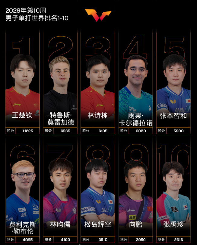 北京时间3月4日,WTT重庆冠军赛外卡名单已经确定,黄友政、温瑞博两位国乒小将入选,重庆冠军赛将在3月10日开打。根据WTT官方的消息,林诗栋、张禹珍、吴晙诚选择退赛,递补陈垣宇、格罗特。国乒核心林诗栋退赛,等于是陈垣宇递补,陈垣宇在WTT新加坡大满贯进入了男单八强,林诗栋也是止步新加坡大满贯的八强。林诗栋在新加坡大满贯两项都不敌小勒布伦,男双决赛林诗栋/黄...