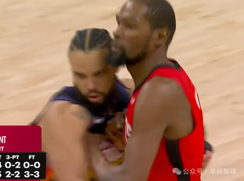 事实证明,乌度卡的这次调整极具针对性,奥科吉对布克的限制效果远好于小贾巴里。前文提到,伊森与小贾的防守通病一致:偏爱依靠身体尺寸跟防,刻意避免身体对抗,往往让进攻球员轻松占据有利位置完成终结。反观太阳的奥尼尔、布鲁克斯防守杜兰特的思路,一方面用持续高强度对抗消耗杜兰特体能,另一方面不断干扰其进入舒适进攻区,即便无法完全锁死超级得分手,也能有效压低其进攻效率。
